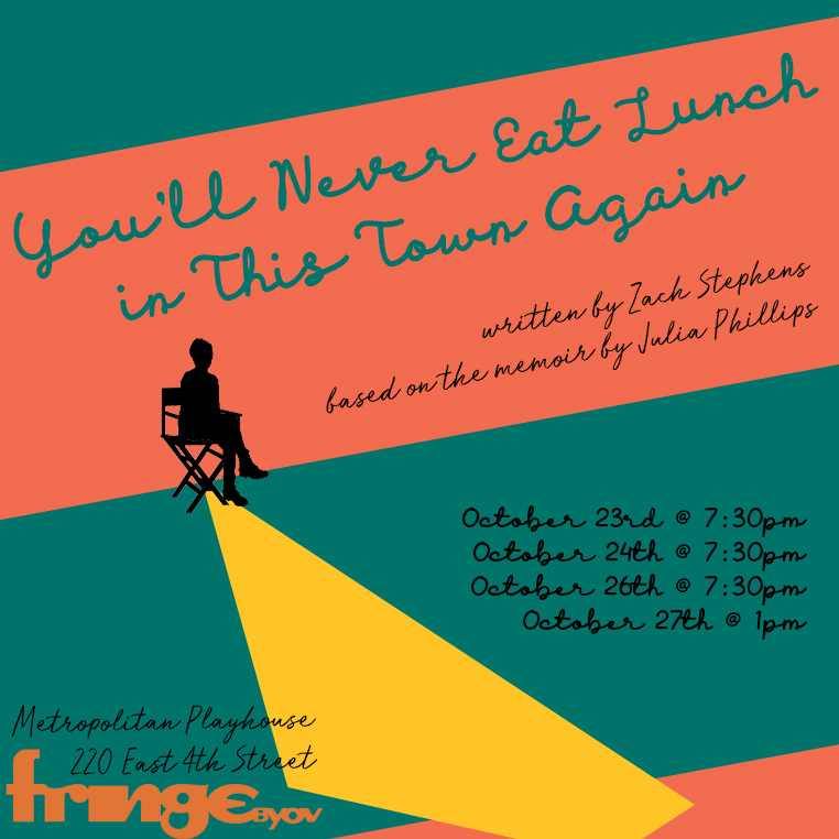 You’ll Never Eat Lunch in This Town Again Come check out You’ll Never Eat Lunch in This Town Again October 23rd-27th at the Metropolitan Playhouse.Here’s the link to buy tickets: http://www.fringenyc.org/basic_page.php?ltr=Y#You